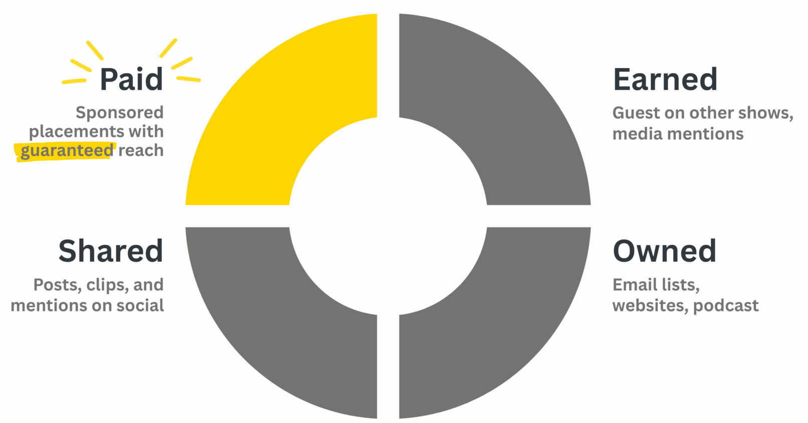 You can pay for vague reach and clicks, but you don’t know who’s clicking, whether they actually listen, or anything else because most of it’s happening on Apple and Spotify’s walled gardens.